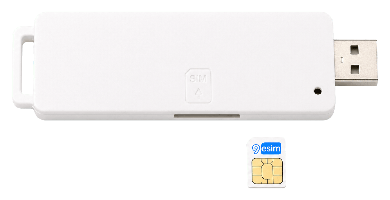 A reusable USB-A card reader. Works with any 9eSIM card and ships with open-source drivers for Linux, macOS, and Windows.